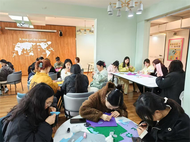 3月12日14:00,英语(专升本)2402班于青藤书院青藤·共享厅开展了以“赴一场有风的约会”为主题的完满团支部活动。各类不织布、工具摆放整齐,同学们在轻松氛围中投入创作,有人细心剪花瓣;有人巧造森林层次感;有人精心缝湖泊波纹。创作中大家交流心得、分享创意,笑声不断。经数小时努力,一幅幅充满生机的作品完成,随后拼接成巨幅画卷,呈现花坛、森林、湖泊交相辉映的春景。此次活动让同学们感受创作乐趣,于忙碌学习中寻得宁静,通过不织布制作表达对生机的向往,展现了班级的团结合作,也激励着同学们如画卷般生机勃勃,勇迎未来挑战机遇。
