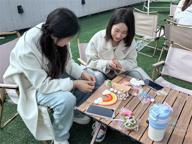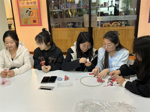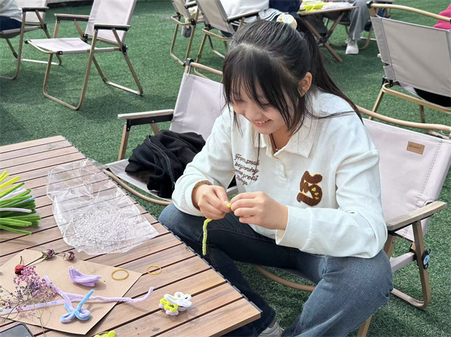 3月12日12:30,英语2404班于毣谷书院·蘑菇天台开展了以“赴一场风的约‘绘’”为主题的完满团支部活动。活动将风铃手工制作与春日风情结合,同学们专注制作扭扭棒风铃,将扭扭棒注入自己的奇思妙想,同时大家互相交流创意,在沟通中碰撞出思维的火花;接下来大家用卡纸、干花制作手写贺卡,写下美好祝愿,在充满生机的时节留下大家的青春记忆。此次活动不仅让同学们收获手工乐趣、增进情谊,还为大家提供放松平台,增强了对传统文化的认同感。