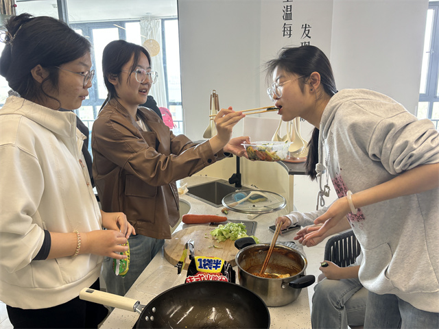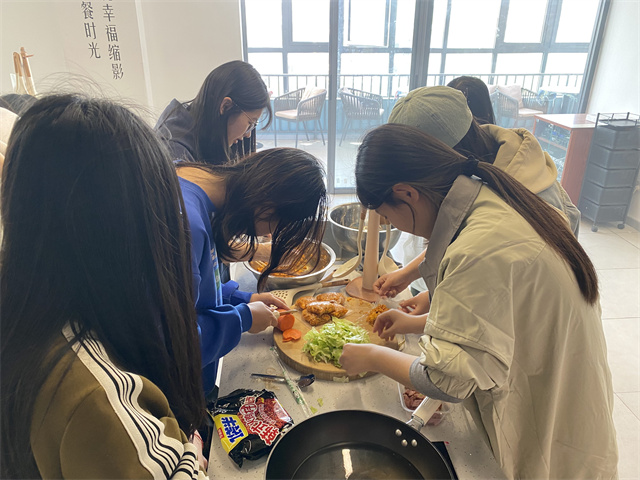 4月9日英语2402班于毣谷望野·共享厨房举办了以“一卷一春天,一笑一香甜”为主题的完满团支部活动。活动现场,同学们以青蔬为笔,面皮为纸,将荠菜的清鲜、豆沙的绵甜细细调制成馅料。活动特别设置了创意比拼环节,各组同学大胆创新,在传统春卷的基础上加入现代元素。有的小组尝试了中西合璧的馅料组合;有的则在造型摆盘上下足功夫。本次活动通过分组备料、协作包卷等环节,培养了同学们的默契配合与统筹协调能力。此次活动既强化了文化认同,又以食为媒凝聚了团队力量。
