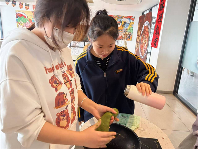 4月10日,商务英语2201班于三达书院意空间开展了一场以“巧手做青团,共品春滋味”为主题的完满团支部活动。活动在愉快的氛围中进行着,同学们齐聚一堂,做好制作青团的准备。组织者介绍了青团的传统制作方法,同学们拿到面粉和馅料后,在组织者的指导下忙碌起来。在制作青团的同时,同学们相互交流着制作青团的方法和技巧,还分享着彼此生活中的趣事和快乐。拿着自己亲手制作的青团,脸上洋溢着轻松愉快的笑容。此次活动不仅让同学们在动手实践中体验制作青团的乐趣、感受传统文化的氛围,更是涵养了自己的爱国情怀、增进了同学之间的情谊。