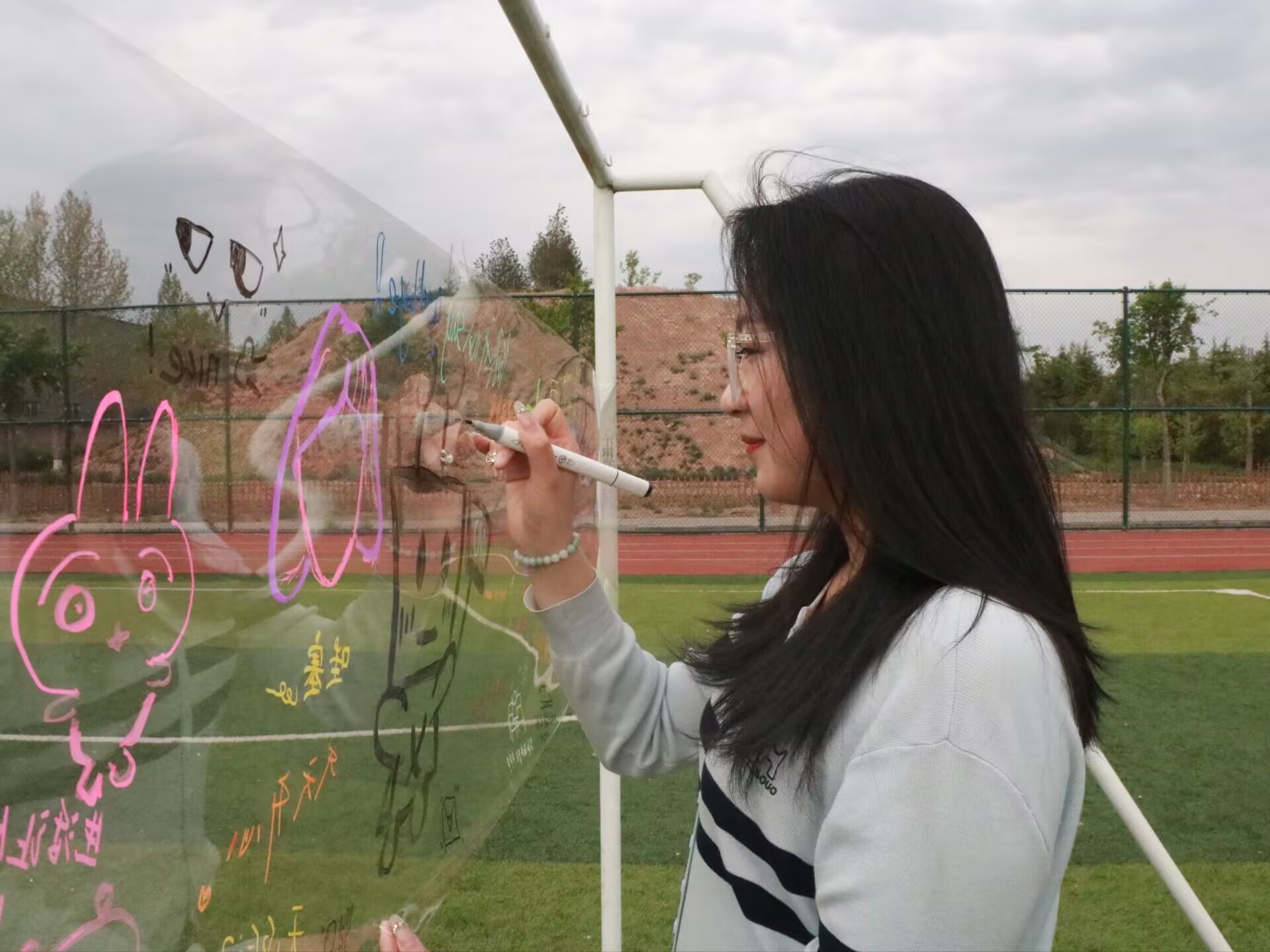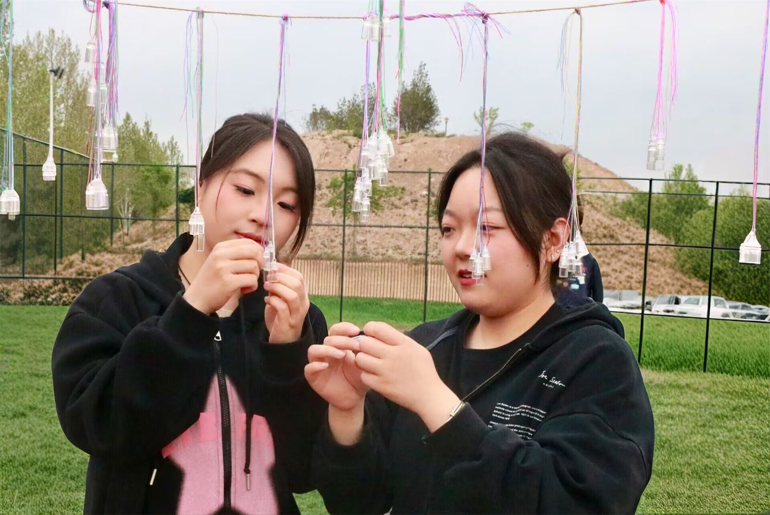 活动现场,各个摊位早已准备就绪,期待同学们的“大驾光临”。第一站,同学们纷纷把焦虑写成小纸条,丢进“焦虑漂流瓶”,让烦恼随波“漂”散!同学们认真写下“考试失利”“身材焦虑”等烦恼,将纸条卷成筒状,用麻绳仔细系紧,随着风起,漂流瓶轻轻摇曳,发出此起彼伏的“叮当”声,那些打着绳结的烦恼,也随着微风慢慢消融。