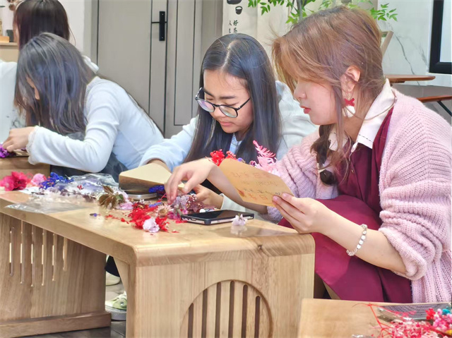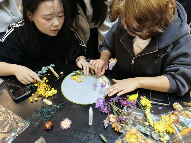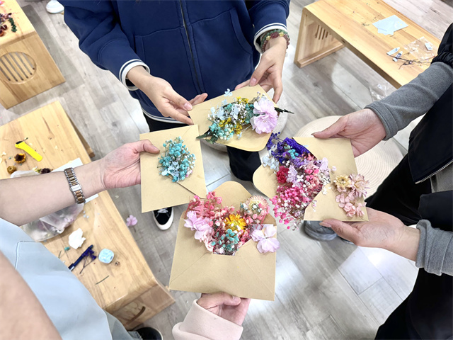 4月14日,商务英语2401班于上河书院206竹林·围炉夜话举办了以“春日来信,花束传情”为主题的完满团支部活动。活动现场的长桌上整齐摆放着五颜六色的干花,还有质地各异、设计精美的信封,以及剪刀、胶水、丝带等工具。同学们挑选自己心仪的干花,根据花的大小和颜色进行搭配,将干花放入信封并进行装饰的关键环节。大家充分发挥自己的创意,相互学习。从中获取灵感,打磨自己的作品。此次活动因花束而更加圆满,因友情而无比珍贵。热闹的氛围,也将继续传递到下一位班级,相信此次美好的回忆也将永远印刻在每个人心中。