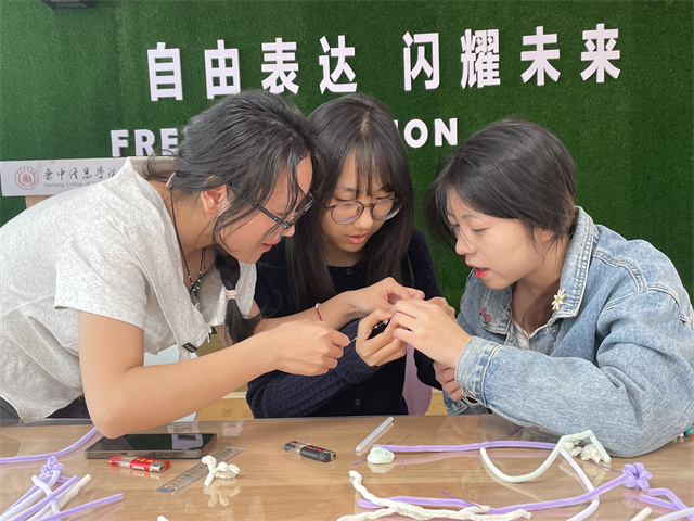 4月15日,英语2405班在三达书院意空间开展了以“春和四月里,鸢梦手间织”为主题的完满团支部活动。活动现场热闹有趣,风铃制作环节同样精彩纷呈。贝壳、彩珠等材料在同学们手中巧妙组合。同学们精心挑选贝壳,打造出清新自然的海洋风风铃。在微风中奏响和谐的乐章。随着一个个风铃的完工,清脆声响在空间中回荡,似在诉说春日的温柔。此次活动,不仅为同学们提供了展示创意与才艺的舞台,更在实践中加深了大家对传统文化的理解与热爱。通过合作与交流,同学们收获了知识、技能与友谊,为团支部生活增添了绚丽色彩。