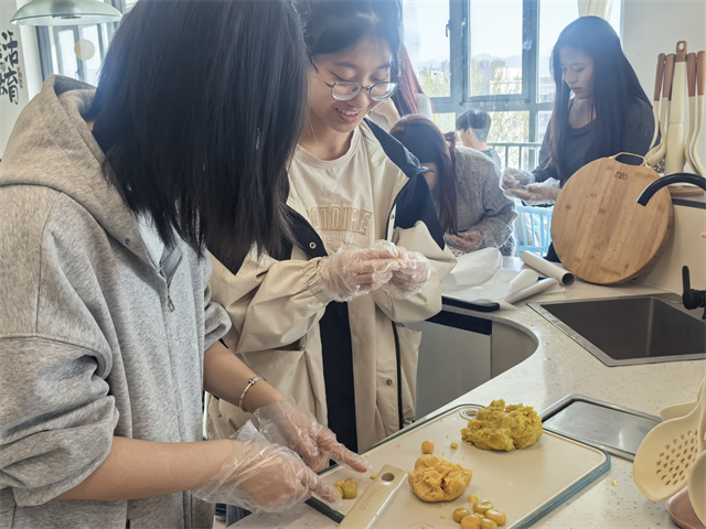 4月14日,商务英语2402班于毣谷望野·共享厨房开展了一场以“逐春·焙出春意”为主题的完满团支部活动,旨在通过亲手制作饼干和蛋挞,让同学们在甜蜜的香气中感受春天的美好,共同分享这份春意满满的喜悦。厨房里充满了欢声笑语,有的负责称量食材,有的负责搅拌面糊,还有的负责设计饼干的花样。大家互相协作,充分发挥自己的创意。在等待烘焙的过程中,同学们分享着彼此的心得和乐趣,增进了彼此之间的友谊。饼干和蛋挞出炉后,大家迫不及待地品尝起来,纷纷夸赞自己小组的作品,共享这美好的时光。