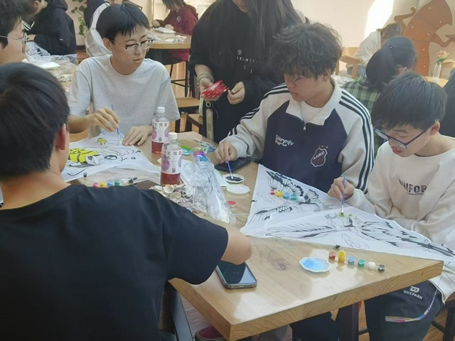 4月18日,英语2401班在箕城会议室举办以“团扇拂风传古韵,油纸遮雨润文心”为主题的完满团支部活动。活动现场,同学们将颜料滴入水中,任其自然晕染交融,形成流动的纹理,随后将扇面缓缓浸入水中,瞬间定格色彩与水的诗意碰撞。活动还特别设置了“油纸伞”联创环节,同学们通过拼贴、彩绘等手法,赋予传统器物以青春气息。经过两小时的精心创作,十余件作品惊艳亮相:蝴蝶形漆扇翩然若飞,圆形扇面“金榜题名”寄寓祝福,更有山水纹路与抽象泼彩交织的艺术之作。活动尾声,全体成员手持作品合影留念,镜头定格的笑脸与缤纷扇面相映成辉。