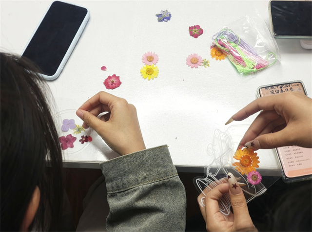4月16日,英语2303班于三达书院行空间精心举办了一场以“瓶藏干花韵,笺留春日香”为主题的完满团支部活动。活动现场,同学们精心挑选着心仪的PET透明瓶子贴纸,这些贴纸形状丰富多样,充满生机的树叶形状,与干花相得益彰,展现出大自然的蓬勃生命力。完成干花书签的制作后,活动进入了温馨而感人的高潮部分——书写春日寄语。同学们纷纷拿起便签纸,静下心来,将自己内心深处对春天的感悟、对未来的期许、对同学的祝福,一笔一划地写在纸上。此次活动不仅为同学们提供了一个放松身心、发挥创意的平台,也让大家在手工制作中体验到了乐趣与成就感。