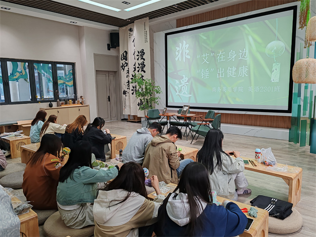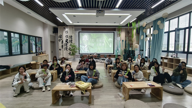 4月11日,英语2301班在上河书院206竹林·围炉夜话开展了以“‘艾’在身边‘锤’出健康’”为主题的完满团支部活动。活动现场,同学们坐在长桌旁,面前堆满干艾草、棉布与针线。在班委示范后,大家立刻动手,将艾草均匀填充进布袋,手指穿梭间针线飞舞。活动来到了设计吊牌环节,纸、马克笔、贴纸在桌面上整齐排列,凝神书写工整寄语,勾勒简笔插画为文字添彩。此次活动也让日常手工升华为情感交流的载体,当大家用双手传递温暖,校园生活也因此多了一份温度。