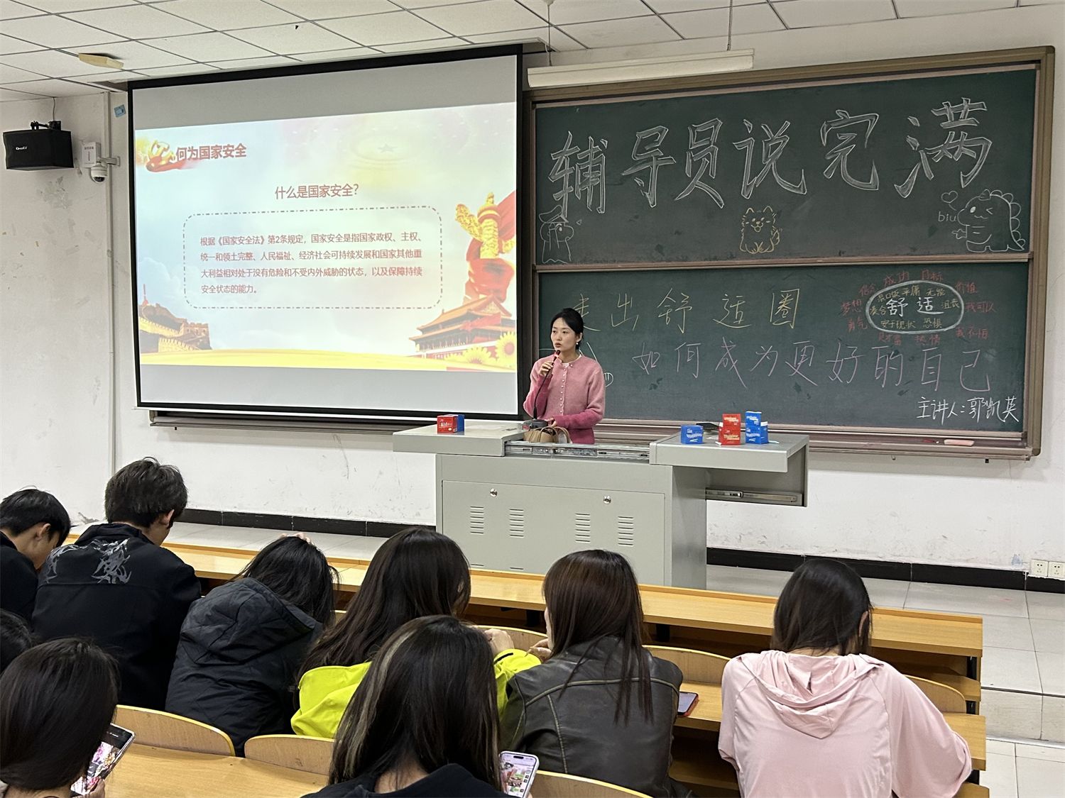 晋中信息学院商务英语学院辅导员郭凯英老师于4月18日17:00在2教201举办以“走出舒适圈,如何成为更好的自己”为主题的辅导员说完满活动,以国家安全、个人成长与情感发展为脉络,为学生带来一场干货满满的成长指南。活动中,郭老师结合《国家安全法》《反间谍法》及典型案例,解读国家安全内涵,警示违法后果,引导学生从保守秘密、举报可疑行为等细节入手,强化维护国家安全的责任意识。在个人成长环节,她认为舒适圈外才有收获,应打破“躺平”思维,建议学生制定目标、从小处改变,善用资源、减少内耗,在挑战中实现自我突破。谈及恋爱话题,郭老师强调“爱人先爱己”,倡导建立平等、理性的健康恋爱关系,提醒学生在情感中保持清醒,让爱情成为青春成长的积极助力。