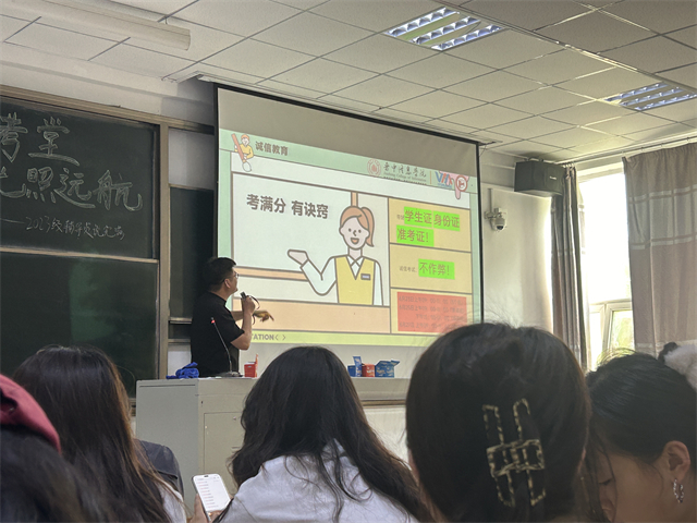 杜老师强调小学期对学生成长的重要意义,鼓励同学们积极参与活动实现自我提升;同时,详细讲解了考试时间安排、考场规则及成绩评定标准,着重强调诚信考试的重要性,为同学们敲响诚信警钟并引入九型人格理论,引导学生通过自我评估深入认识自身性格特点,发挥优势、弥补不足,助力人格完善。最后,从交通安全、消防安全、网络安全及校园生活安全等多个维度,提醒同学们时刻保持安全意识,掌握应急技能,确保自身生命财产安全,为同学们的学习生活筑牢安全防线。