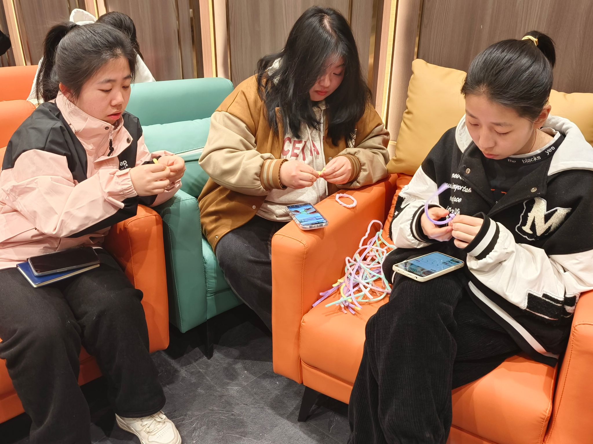 活动进行到中期,大家十分投入,有同学组队分工完成一个作品,有同学专门制作许多小饰品,组织者们也都参与进来,用扭扭棒与大家一同制作。活动现场气氛热烈,同学们互相交流着制作过程,分享着彼此的想法。每一件作品都充满了同学们的创意和热情,也寄托着他们对身边女性的祝福和敬意。大家借着这个机会,发挥自己的创意和才华,为女性节献上最真挚的祝福。