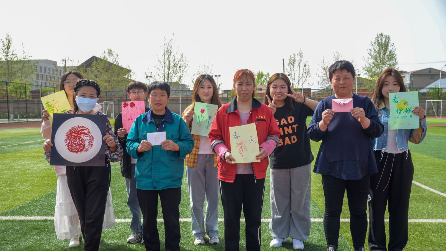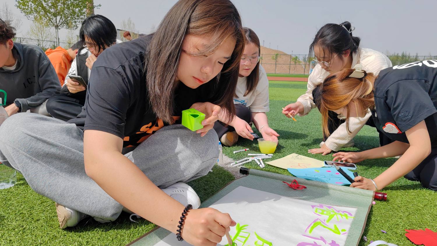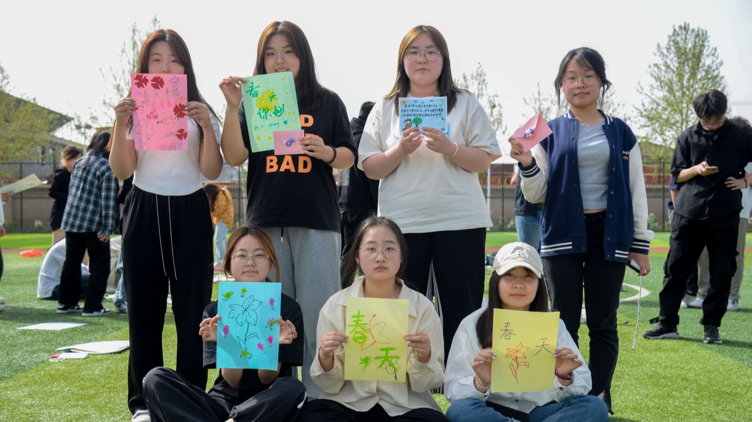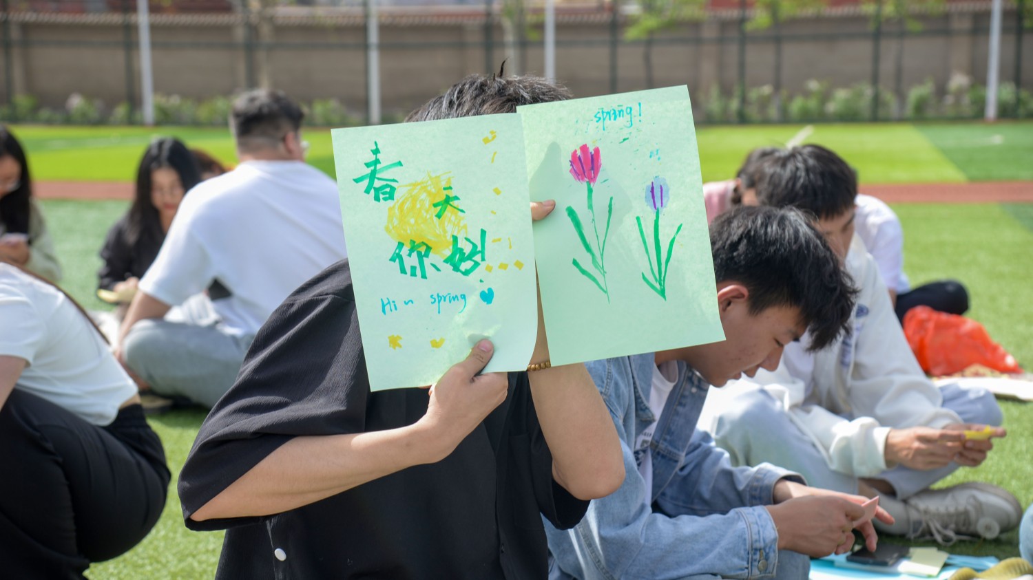同学们的目光在景色中游走,捕捉每一处细微的美好,找寻最完美的视角。用柔软的画笔描绘大自然的轮廓,每一笔都充满了春天的力量和生命力。他们的画笔在画卷上跳跃、旋转,随大自然共舞。卡片与画轴共同承载着同学们美好的祝福,亦是他们心中春的模样。经过一番创作,鲜艳的色彩冲击着眼球。各种色彩因子的交叠,形成了一幅令人惊叹的画卷。这些色彩使画面既有层次感,又不失和谐,令人们陶醉于春日独有的“多巴胺”里。