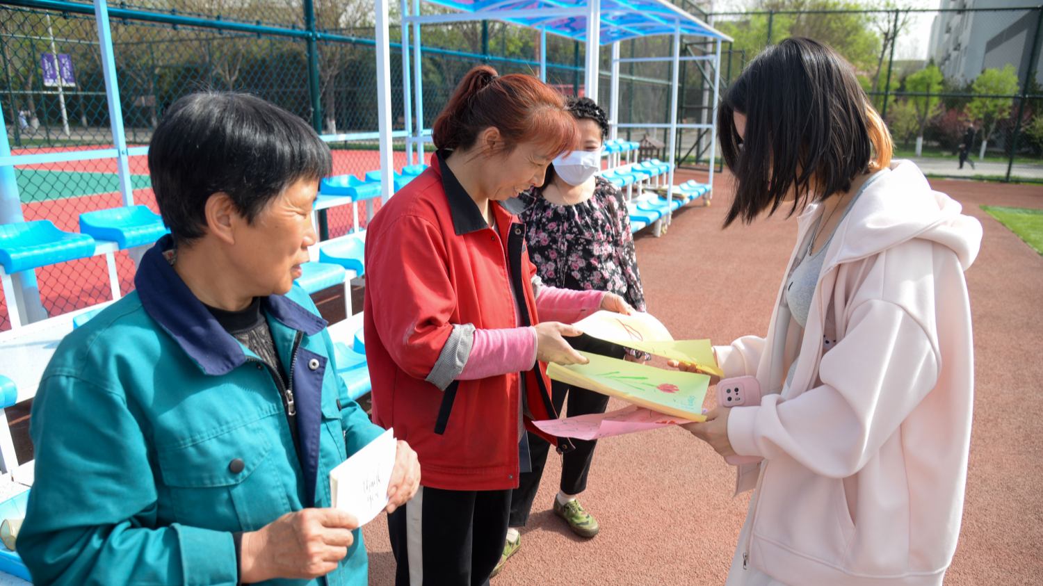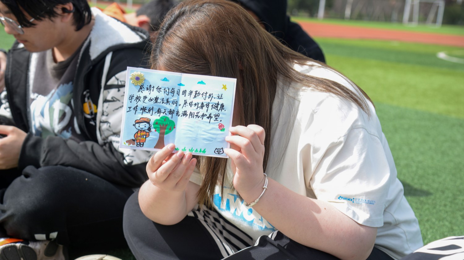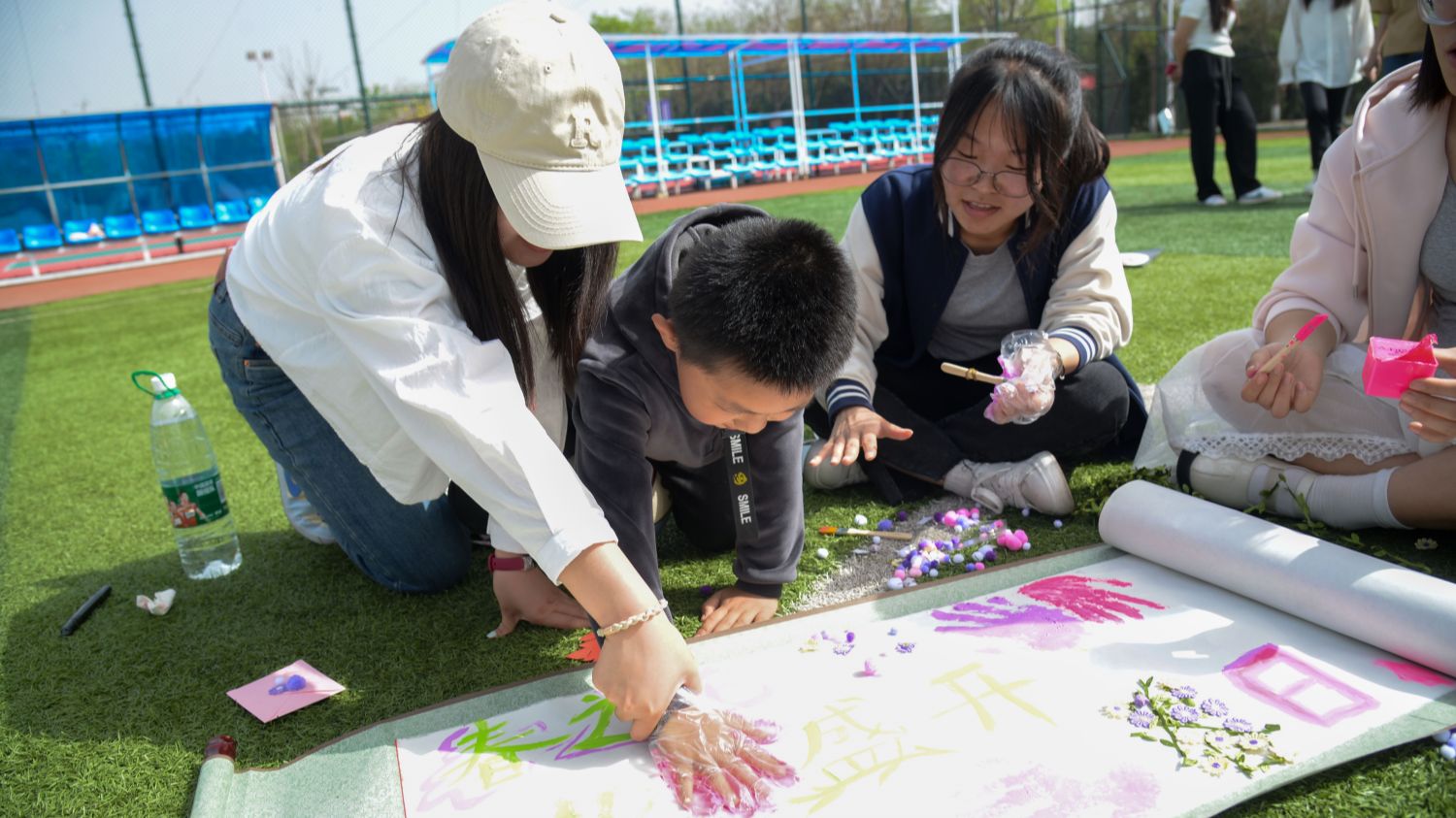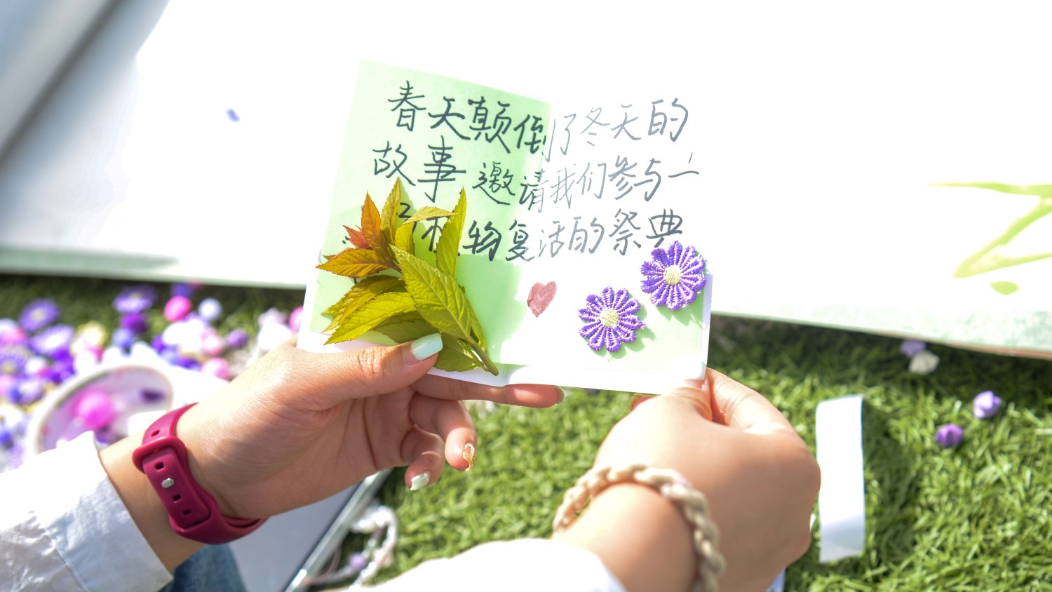 同学们的目光在景色中游走,捕捉每一处细微的美好,找寻最完美的视角。用柔软的画笔描绘大自然的轮廓,每一笔都充满了春天的力量和生命力。他们的画笔在画卷上跳跃、旋转,随大自然共舞。卡片与画轴共同承载着同学们美好的祝福,亦是他们心中春的模样。经过一番创作,鲜艳的色彩冲击着眼球。各种色彩因子的交叠,形成了一幅令人惊叹的画卷。这些色彩使画面既有层次感,又不失和谐,令人们陶醉于春日独有的“多巴胺”里。