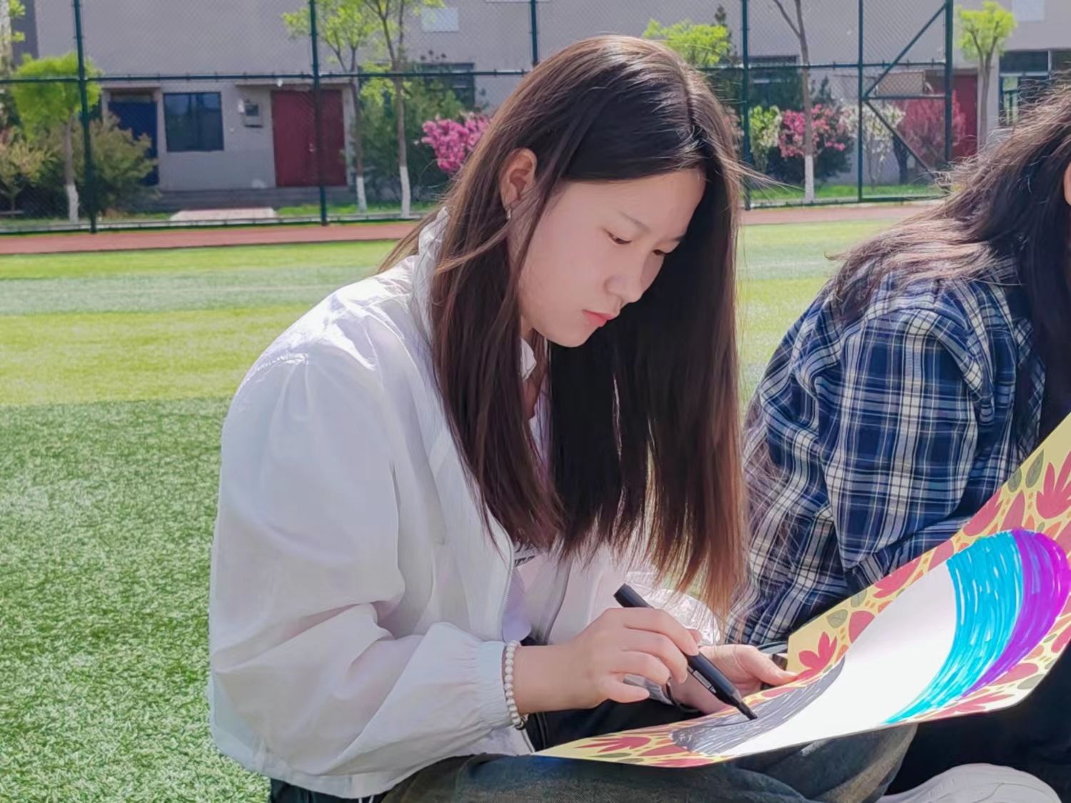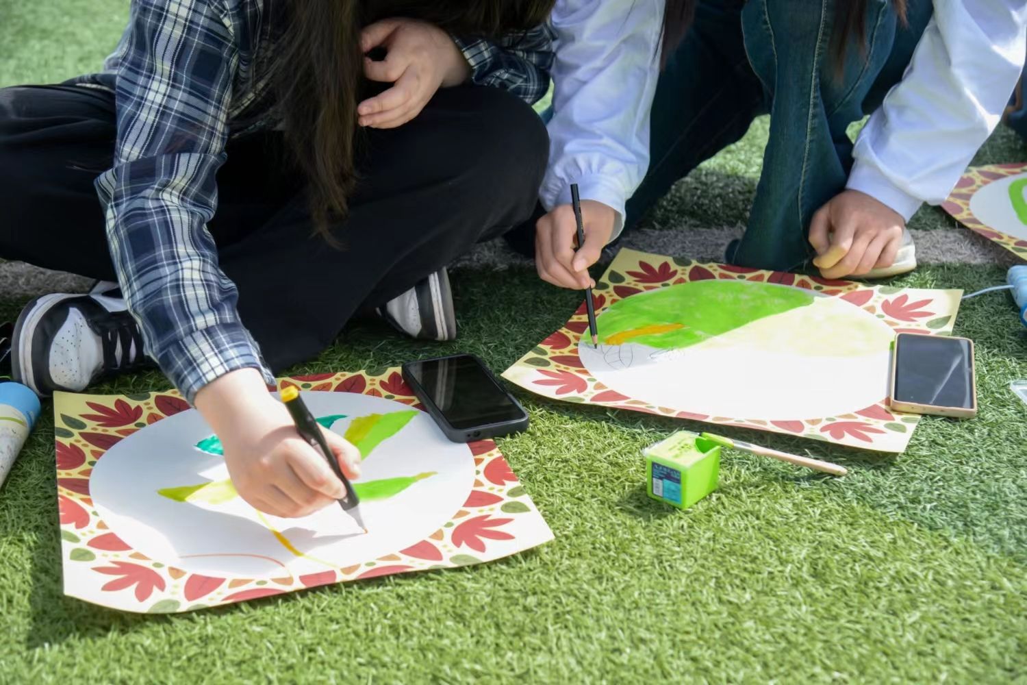 在进行简单的任务分工后,同学们心怀同一理念,众志成城,各司其职,或以笔为剑,或以墨为锋,心怀对自然之敬佩,将清风揽入怀中,将盛景跃然纸上。