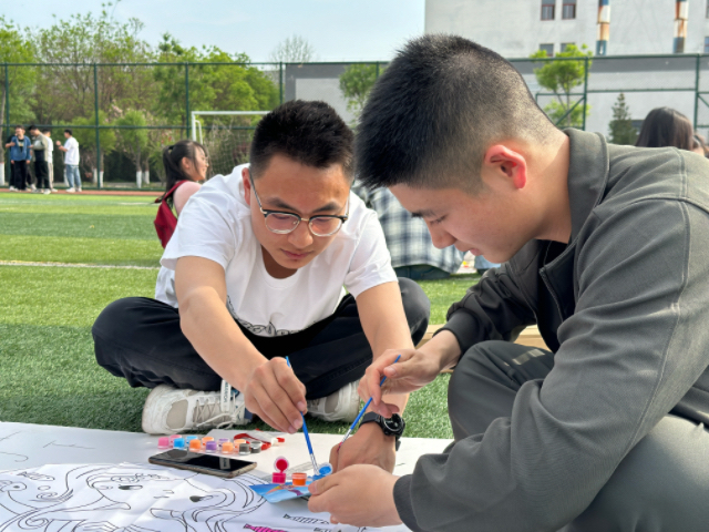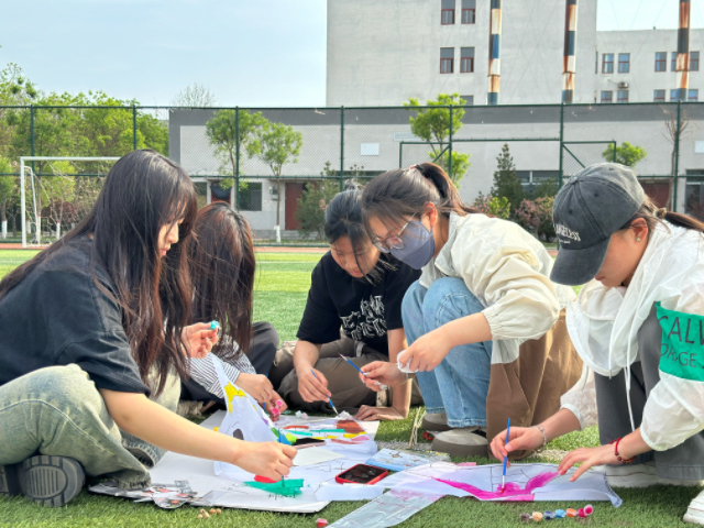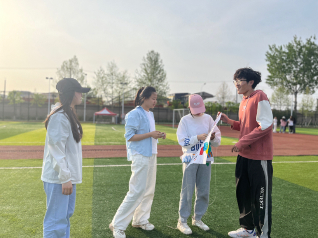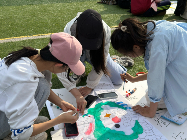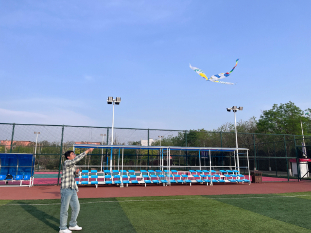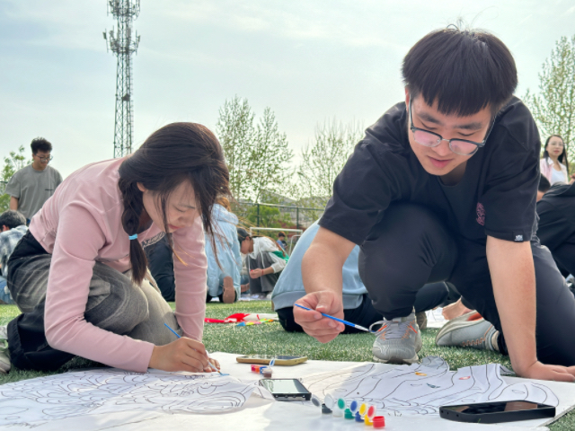 移步体育公园,同学们手握空白风筝与五彩斑斓的颜料,化身为才华横溢的艺术家。发挥自己的创意和想象力,将对春天的热爱、对未来的憧憬以及对生活的独特理解,悉数倾注于风筝之上。一笔一画间,形态各异的动物、寓意吉祥的图案、充满现代感的设计纷纷跃然纸上,再经绚丽色彩的渲染,使得原本素净的风筝变得鲜活灵动。在创作中,大家将自己的想象力全然转化为实践能力,在五彩斑斓的世界中捕获春天的美好,切身感受传统文化之经典、体悟生活之奥妙。