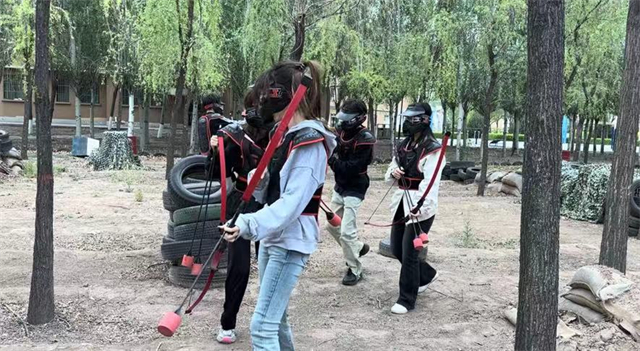 活动开始前,同学们在GAG素质拓展社任社长从弓箭的历史开始讲起,并对使用弓箭的姿势,如何放手、射箭到护具的佩戴以及保护事项为同学们进行了详细的介绍讲解“射箭时的站姿是什么样?”“该怎么发力,瞄准?”“拉弓要拉到什么程度?”并且对活动的安全进行了强调!同学们认真听完讲解后都穿上特制的防护服,佩戴上头盔,被平均分成“红、蓝”两队,在规定的场地内,通过弓箭射击和躲避来争夺比赛的胜利。