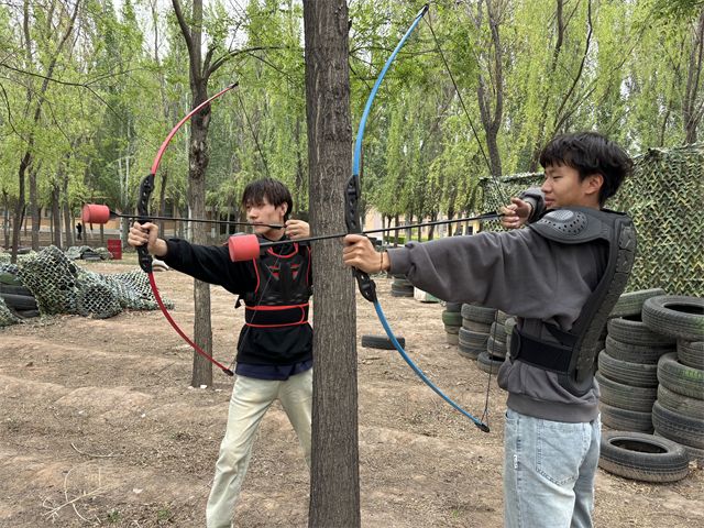 在战火纷飞的春秋战国时代,礼、乐、射、御、书、数,作为当时读书人必须学习的六种技艺并传承至今,其中,“射”作为彰显国家强大军事力量的工具,既能杀敌于千里之外,又能与“礼”结合展现传统文化的魅力。为弘扬中华优秀传统文化,提升基层活力,远景2304班于4月19日14:00在学校淬炼营举办了以“箭心共向,班映同心”为主题的完满团支部主题活动,以攻防箭的形式,加强同学们对团队合作的理解,让同学们在活动中体会到完满的乐趣。活动特邀到了GAG素质拓展协会社长任泓铮同学为同学们进行指导,在保证安全的前提下享受更加专业的体验感。