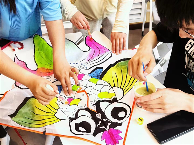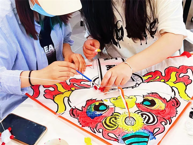 在这场孟夏的盛宴中,同学们陆续将所需的染料汇聚于手中,他们纷纷握起绘笔,在素白的纸鸢表面上勾勒出每个人心中对自由的高歌。从简洁的线条描绘,到缤纷的五色,每一笔都倾注着远景青年对美好事物的热忱与向往。色彩与线条的交织,将“素白”的纸鸢绘成了“五色彩意”。纸鸢上绽放着的娇艳的花朵、轻盈飞舞的蝴蝶。纸鸢——似如一生孤胆来到世上的我们,怀着对梦想的希冀,不断拼搏奋斗。