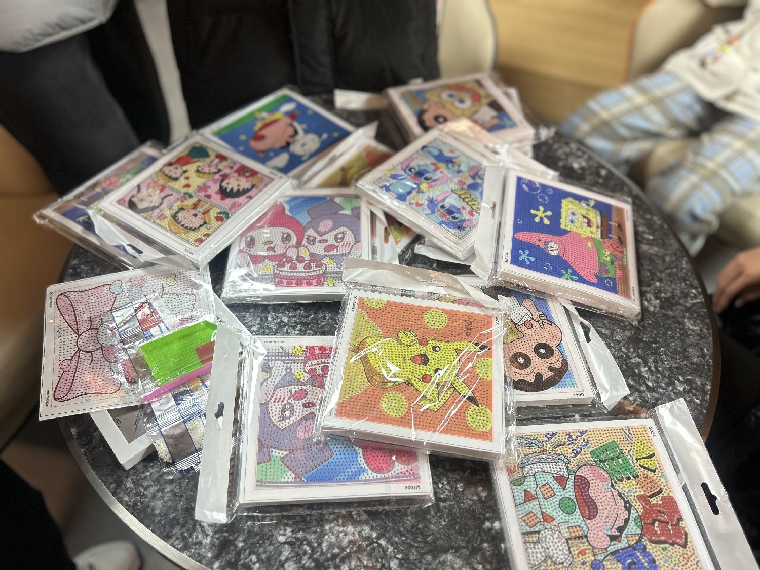 活动现场,色彩斑斓的钻石贴片铺满桌面,每一件作品都在同学们的手中逐渐成形。大家拿起手中的贴片,细致地贴在画布上,每一张贴片都代表着他们的梦想与愿景。随着作品的完成,一幅幅充满创意和个性的钻石画呈现在大家眼前,它们闪耀着璀璨的光芒,映照出同学们心中的梦想。