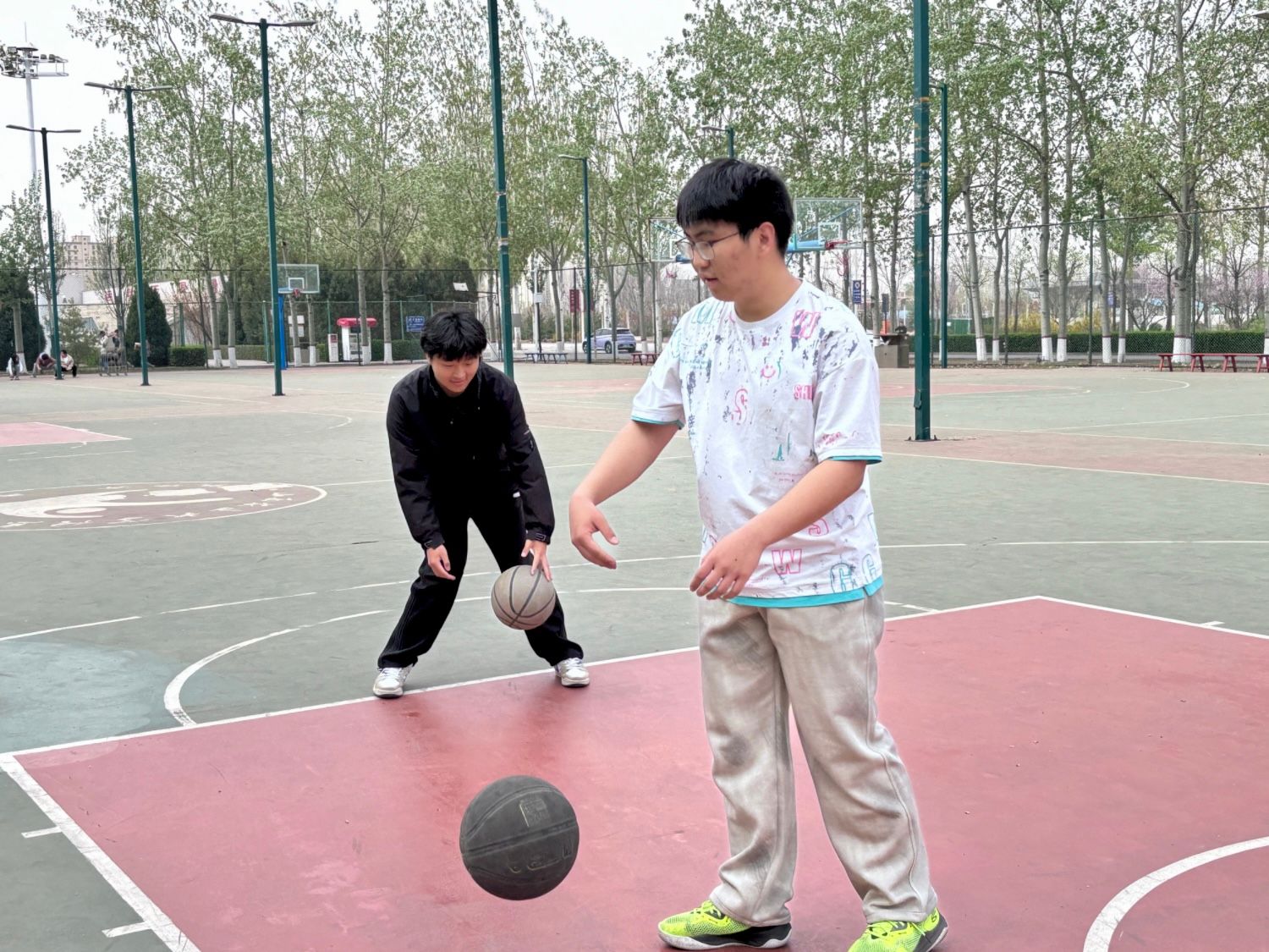 活动开始前的篮球场,热闹非凡。同学们早早来到场地,他们身着轻便的运动装,脸上洋溢着兴奋与期待。在等待活动开始的间隙,有的同学在场地边缘慢跑热身,舒展着身体的每一个关节;有的同学两两一组,相互传球,提前找找手感;还有的同学围在一起,讨论着各个环节的技巧和策略,欢声笑语回荡在球场上空。比赛开始前,在李彦杰的引领下,大家有序开启了训练流程。先是一套全方位的热身动作,转体、跳跃、拉伸,每个动作都做到位,充分活动开身体的每一处关节、肌肉。紧接着,李彦杰又专注地讲解并示范运球技巧,指尖灵动操控着篮球,展示着高低运球、变向运球等实用技能,大伙全神贯注,跟着一招一式认真学习。大家的眼神中都透露出对这场活动的热切期盼,摩拳擦掌,蓄势待发,准备在赛场上一展身手。