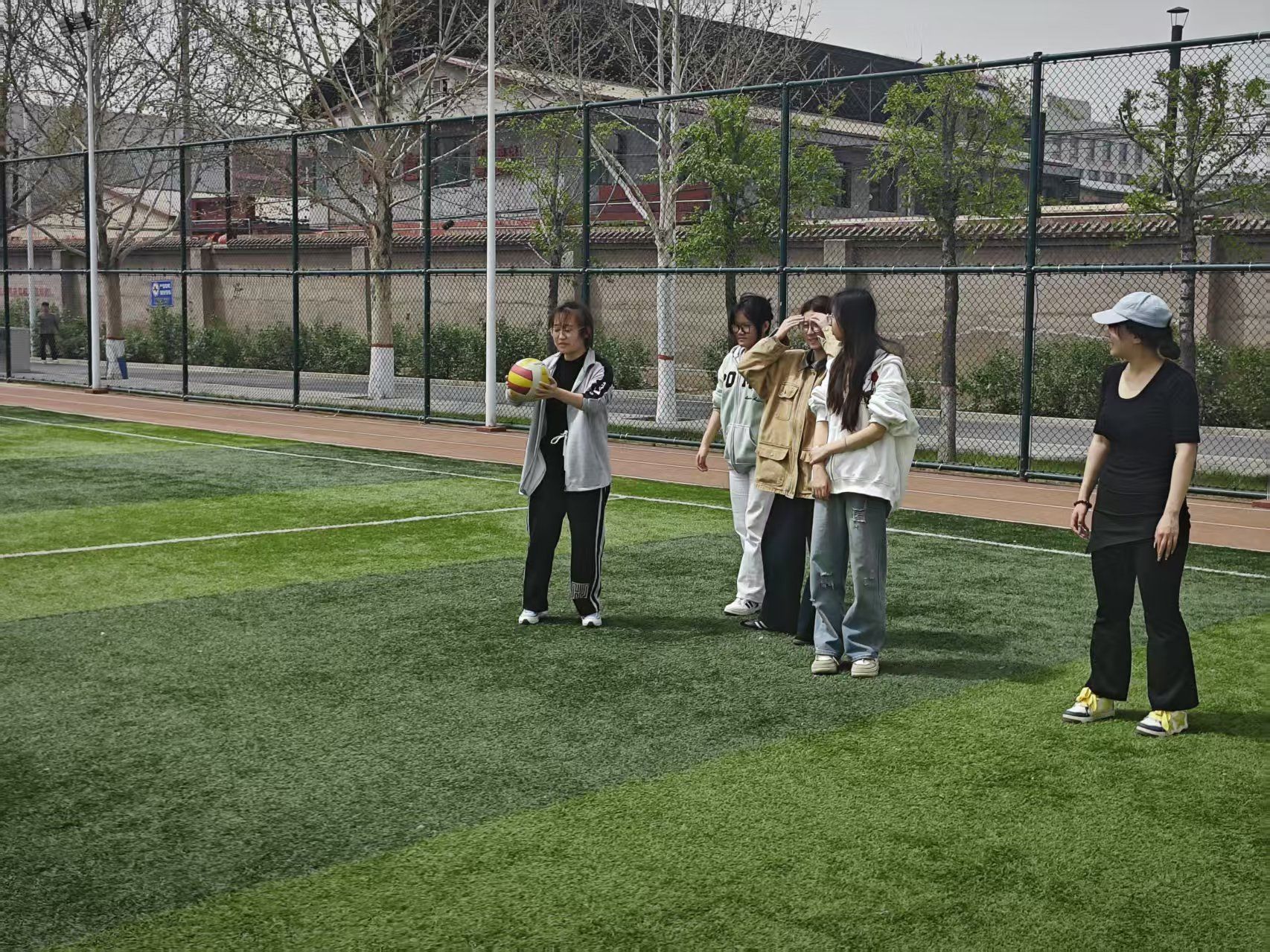作为团队竞技的“重头戏”,“趣味排球擂台赛”采用简化规则,以6人制小组赛形式展开。同学们分为四支队伍,在攻防转换中灵活跑位、默契传球,时而跃起扣杀,时而鱼跃救球,每一次得分都引发阵阵欢呼,每一次失误都换来队友的鼓励。比赛不仅考验技术,更彰显了“不放弃、共进退”的集体精神——落后队伍及时调整战术,领先队伍保持谦逊,场下观众自发组成“后援团”绘制加油板,用掌声与标语传递支持,让竞技氛围始终洋溢着温暖与包容。