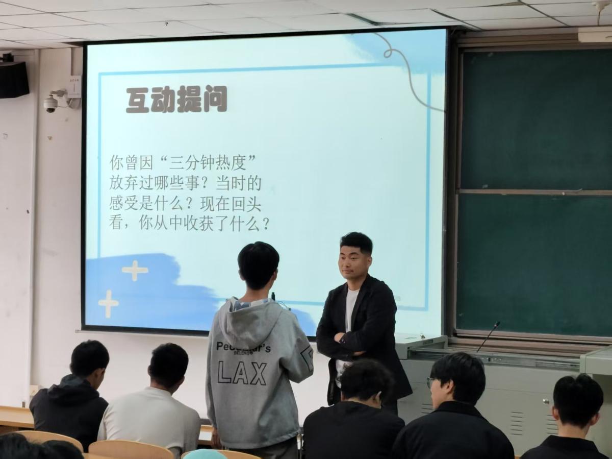 活动伊始,张雄雄老师以“你是否也被贴上‘三分钟热度’的标签?”这一直击心灵的提问迅速拉近与学生的距离。张老师通过生动有趣的案例分享,向同学们阐述了“三分钟热度”并非完全是贬义词。在生活和学习中,每一个三分钟的投入都可能带来新的认知与收获。张老师总结道:“我们总认为‘三分钟热度’是失败的前奏,但每一次三分钟的尝试,都是对未知领域的探索。”瞬间点燃了活动讨论氛围。
