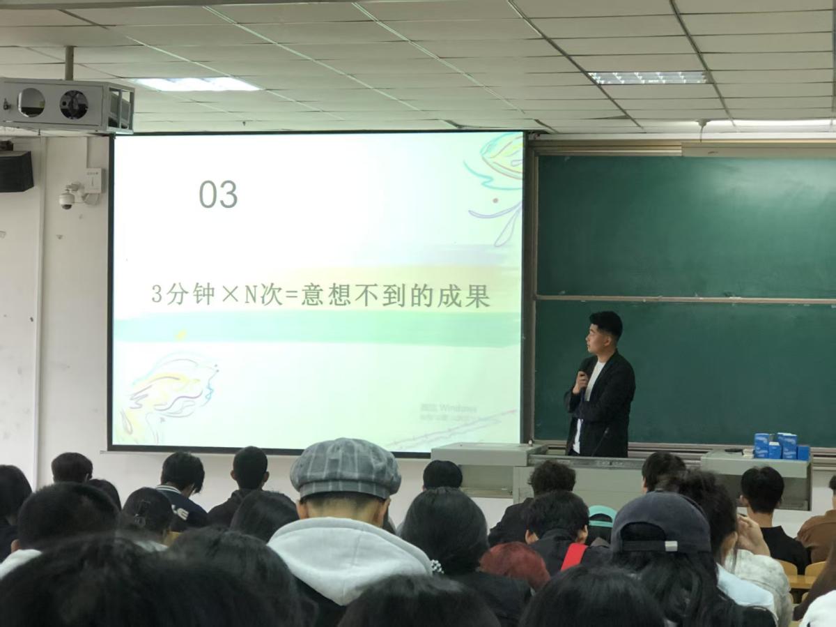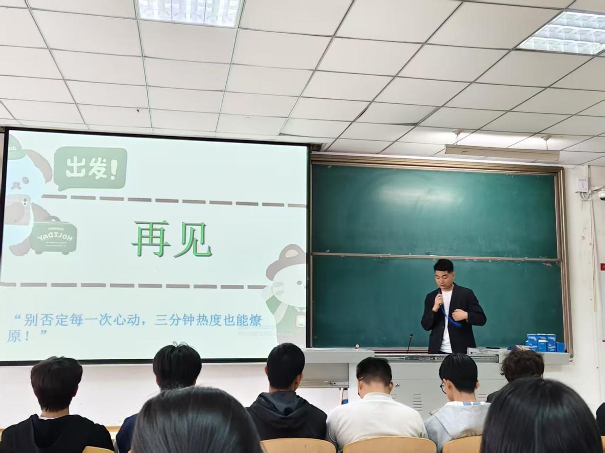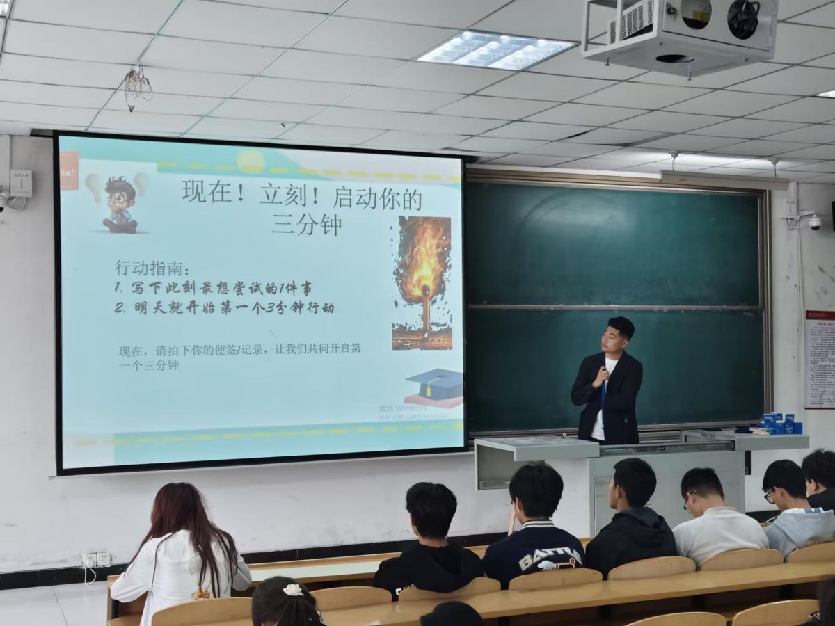 5月23日12:00,经济与管理学院2024级辅导员张雄雄老师开展以“三分钟热度就有三分钟收获,大胆尝试就好”为主题的辅导员说完满活动,旨在鼓励同学们打破“三分钟热度”的固有偏见,引导同学们发现短期行动的价值。