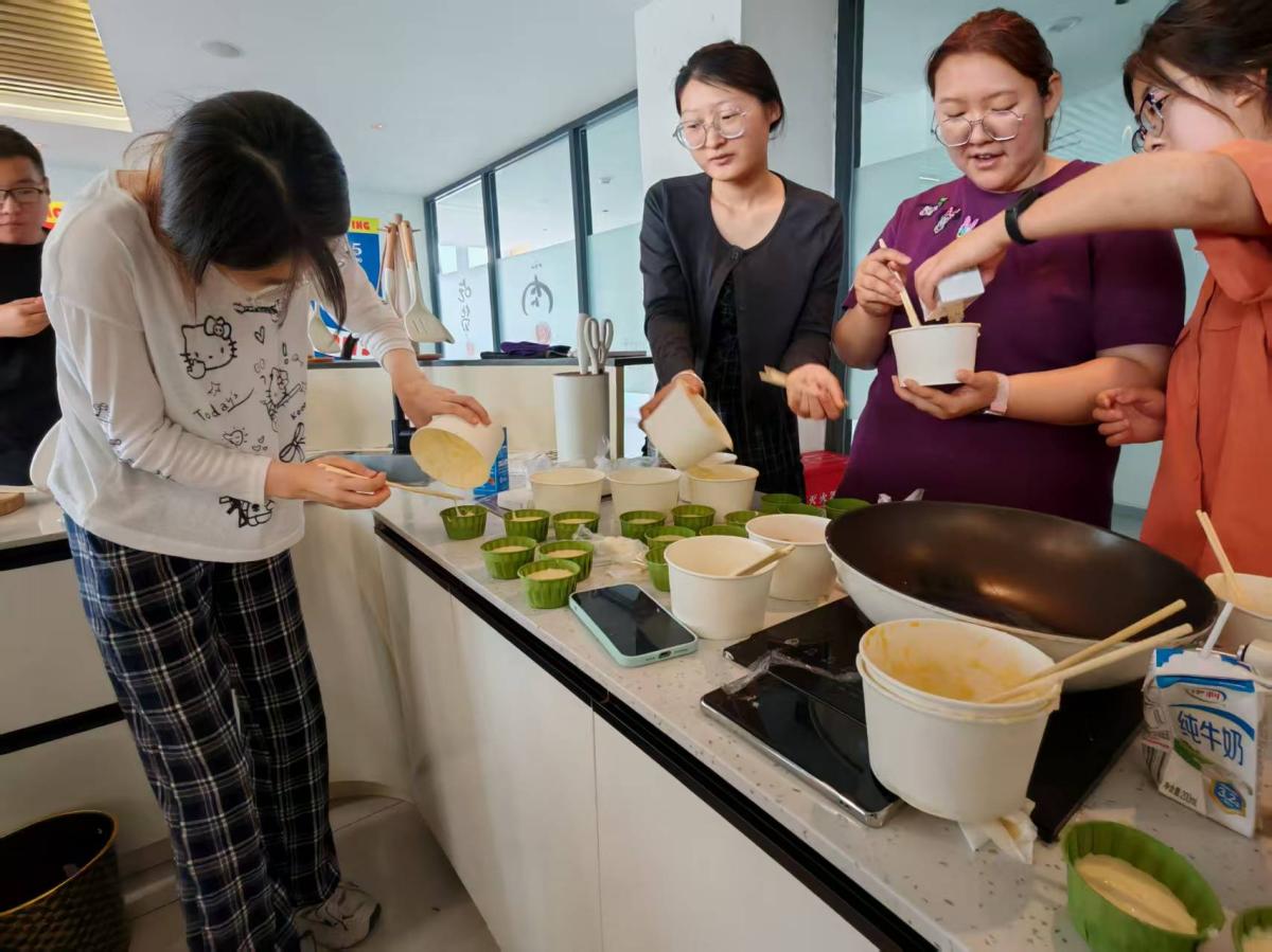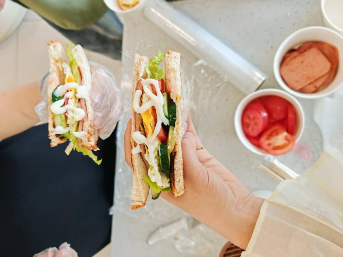 5月15日10:00,物流2401班在毣谷书院共享厨房举办了一场以“烹饪活动——灶台上的‘厨艺启蒙’”为主题的完满团支部活动。此次班级完满活动以提升动手能力、促进班级交流为目的,通过分组协作完成三明治、小蛋糕等美食制作,让同学们感受多元饮食文化魅力,在烟火气中释放压力,增进班级凝聚力,打造充满温情的集体回忆。面对“面糊太稀”“火候不足”等突发状况,各组成员或查阅教程、或互相支招,在协作中化解难题;美食文化分享环节,同学们从三明治的起源聊到西式甜点的工艺,在味蕾体验中感受饮食文化的多元魅力。通过这场别开生面的“厨艺启蒙”,既让同学们在实践中提升动手能力,也通过协作与分享打破社交壁垒,让压力在揉面、烘焙中悄然释放。