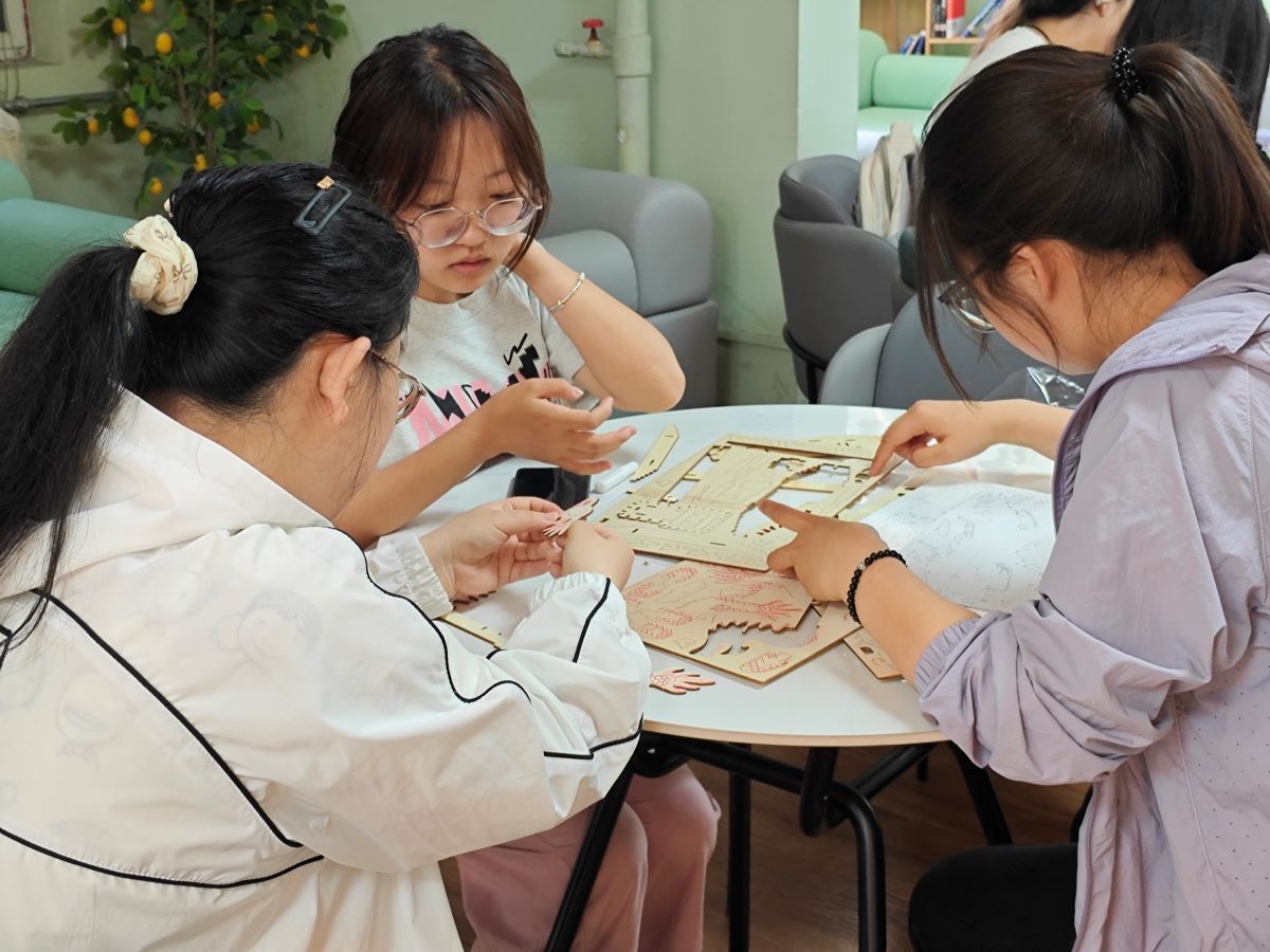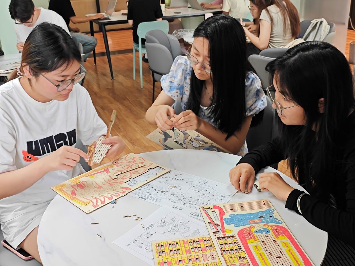 创作过程中,思维的碰撞与技艺的交流从未停歇。遇难题时群策群力,逢瓶颈时集思广益,团队协作精神在协作攻坚中愈发彰显。当一件件承载着巧思的作品惊艳亮相,自豪与喜悦在同学们眉眼间绽放。快门定格精彩瞬间,交流分享创意灵感,欢声笑语中,文化传承的种子已悄然生根。