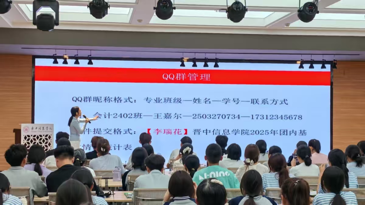 活动伊始,李老师首先从“你我相知”切入,以亲切的互动拉近距离。随后,她聚焦“在校须知”,详细讲解了奖勤助贷、党员组织发展、班级建设等学生工作要点,还通过清晰的示例规范了QQ群昵称和文件提交格式,让新生对校园管理体系有了初步认知。