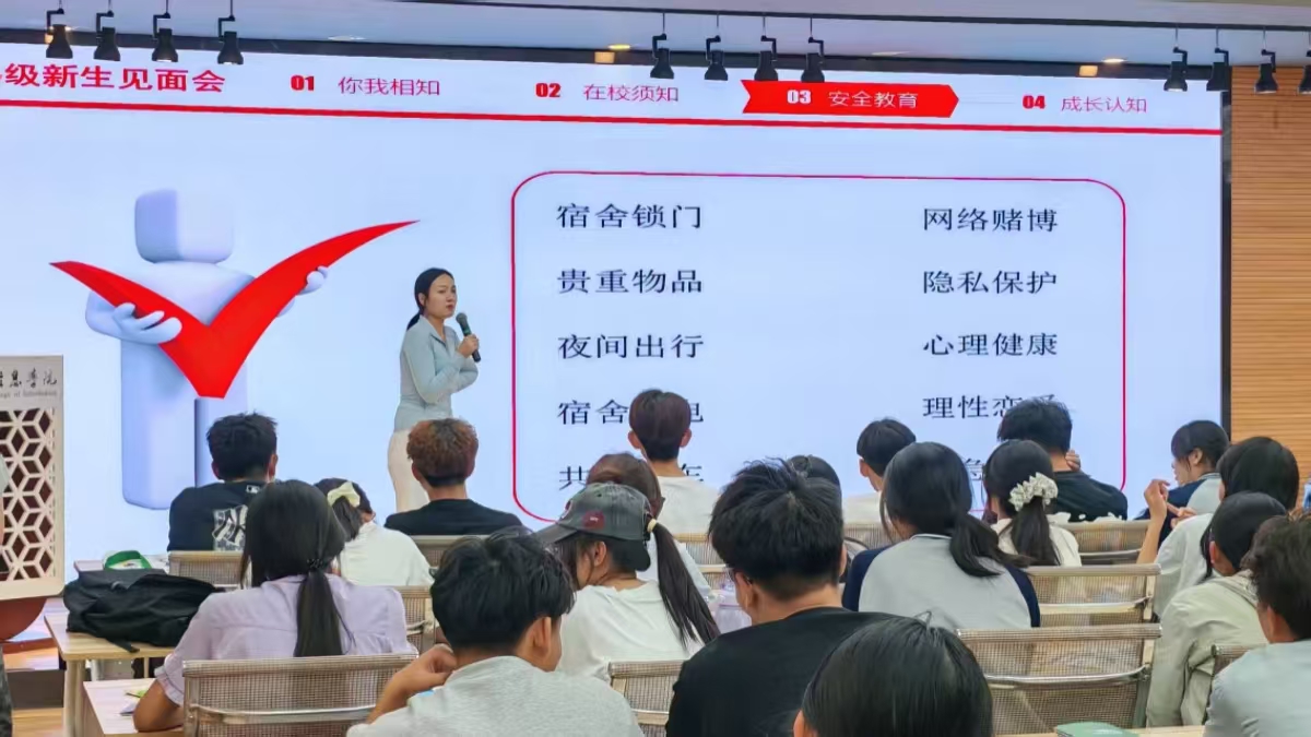 安全教育环节,李老师从宿舍锁门、贵重物品保管、夜间出行、宿舍用电等细节入手,延伸至网络赌博、隐私保护、心理健康、理性恋爱等方面,全方位筑牢新生安全防线。