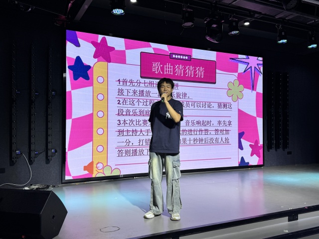 猜歌时的共鸣,是听见彼此的频率;戏剧里的共情,是触摸世界的维度;共舞时的同频,是心跳共振的振幅——这就是艺术写给青春的解压代码。这场代码实验,是一次对完满教育的生动诠释,使每个灵魂都在艺术的热土上找到了独特的闪耀坐标。它不仅为校园生活注入活力,更以创新形式探索了同学们的解压需求。从音乐竞猜的智慧碰撞到配音盲盒的创意表达,再到舞蹈接龙的肢体释放,活动以多元载体诠释“解压即能量”的理念,让同学们在沉浸式体验中重获青春活力。我们不是在解压,而是在给青春的情绪找一个会发光的容器。最后大家以《稻香》这首歌作为结尾,使今夜的故事暂告段落,但属于青春的多巴胺代码,仍在每个跃动的灵魂里,等待下一次被艺术的钥匙,轻轻开启。