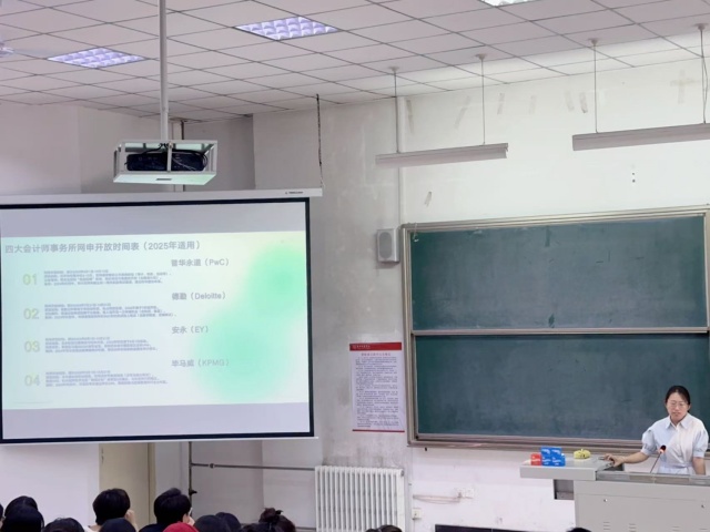 在“四大会计师事务所求职全流程”环节,展示了普华永道、德勤等企业2025年网申时间表,强调“秋招是场‘时间战’——德勤7月底启动网申,毕马威笔试通过率仅30%,需提前6个月准备”。她以真实案例解析简历撰写技巧:“用STAR法则量化成果,如‘协助完成上市公司收入审计,发现3处错报并推动报表调整’,比‘参与审计工作’更具说服力。”