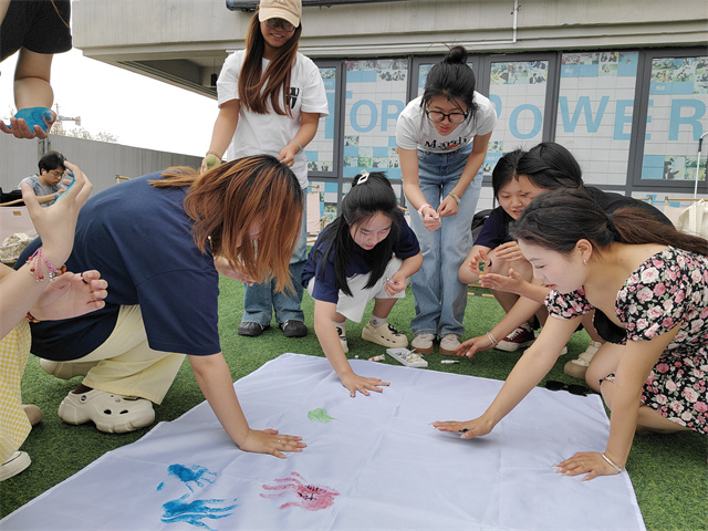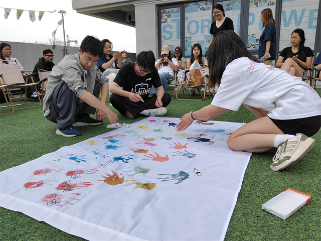 紧接着,“千印同心”环节将活动氛围推向了高潮。组织委员拿出事先准备好的印泥和空白画布,宣布要大家共同完成一幅“同心画卷”。同学们排着队,依次走上前去,用手指蘸上喜欢的颜色,然后郑重地按在画布上。那一个个色彩各异的指纹,就像夜空中闪烁的繁星,渐渐汇聚成一幅美丽的图案。有的同学还别出心裁地将指纹印成了花朵的形状,寓意着团支部如同花朵一般,在青春的花园中绚丽绽放。在这个过程中,大家相互交流着彼此的想法,欢声笑语回荡在教室的每一个角落。