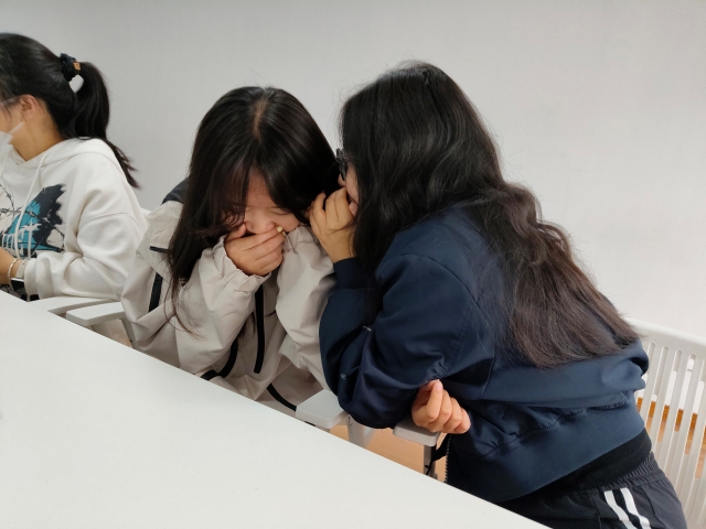 本次活动以“谣言传递大考验”拉开序幕。每组同学排成一列,通过耳语或肢体语言传递“某同学丢了东西”“几班同学看到了什么”等日常交流语句,正确传递字数最多组获胜。经过多轮传递,原始信息往往被扭曲得面目全非。一句简简单单的话语竟能在最后变成另一个意思,段欣廷同学随后公布科学解释,并引导大家讨论:“为什么谣言容易在传播中变形?我们该如何避免成为错误信息的‘二传手’?”这一环节让同学们深刻认识到,未经核实的信息在人际传播中极易失真,而理性思考和查证是遏制谣言的关键。