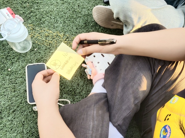 活动最后,同学们在彩色便利贴上写下对吸烟者的劝诫:“你的指尖夹着家人的眼泪”“世界很甜,何必抽烟”……这些充满温度的文字被贴在校门口、食堂走廊等显眼位置。一片片便利贴如同希望的种子,随风轻扬。比起说教他人,以这种温柔的方式更能触动人心,或许某句话就能让路过的人放下手中的香烟。