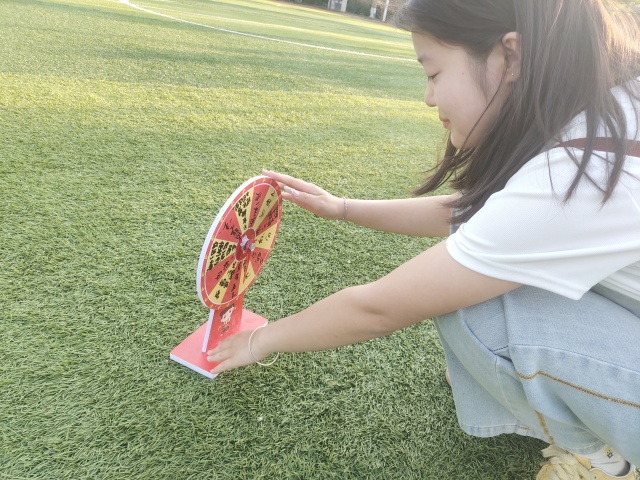 转盘上的“惊喜与使命”。紧接着是“禁烟大转盘”环节将活动推向了高潮。每组派代表转动写有“+3分”“模仿戒烟公益广告”“说出三条吸烟危害”等任务的转盘。当指针停在“用身体摆出禁烟标志”时,第二组的同学立刻围成一圈,高举双臂组成“禁止”符号,创意造型引来阵阵掌声;第一组的同学幸运的抽中了加分选项,其他组纷纷投来了羡慕的目光;而抽到“即兴禁烟标语”的第一组的杨嘉吉脱口而出:“香烟烧掉的不只是时间,还有你的未来!”——这句充满哲思的标语被同学们称为“全场最佳”。转盘转动间,欢笑与思考交织,禁烟知识悄然深入人心。