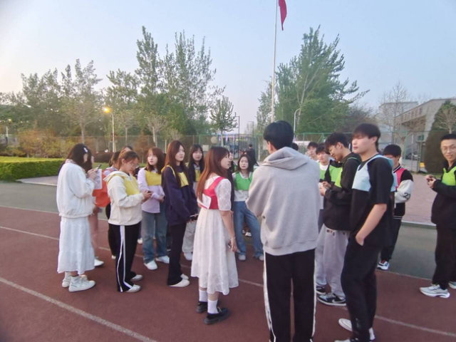 全员已然就位,拍完象征合作与对抗的合照之后,操场上人声鼎沸,气氛热烈。同学们分成若干小组,每组佩戴不同颜色的名牌。主持人宣布游戏开始,同学们立即展开了一场激烈的撕名牌大战。只见他们或奔跑追逐,或巧妙躲闪,或联手围攻,或孤身奋战,现场不时爆发出阵阵欢笑和加油声。