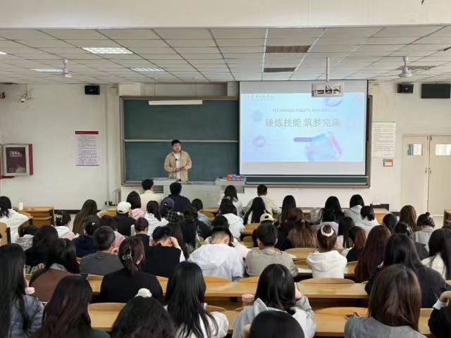 活动伊始,辅导员王军御老师通过生动的口才讲述和详尽的PPT展示,深入浅出地向同学们强调了技能锤炼的重要性。他特别提到,作为当代大学生,我们要注重将理论知识和实践操作相结合,不断提升自身的职业技能,拓宽职业发展空间,增强个人竞争力。同时王老师利用直观的视频素材让我们意识到随着科技的飞速发展和行业的日新月异,社会对人才的技能要求也在持续变化,王老师鼓励大家要持续不断地锤炼技能,积极适应社会发展新需求,从而更从容地面对未来种种挑战。