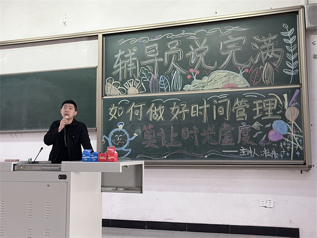 3月15日12:30-13:30,杜伟老师在博学楼301教室开展了以“如何做好时间管理,莫让时光虚度”为主题的辅导员说完满活动,杜老师向同学们分享了三个做好时间管理的具体措施:制定日程安排、时间管理四象限、“番茄钟”,告诉同学们每个人都应该有自己的目标,清楚自己要的是什么。杜老师还分享了高效能人士的时间管理习惯,给予同学们启发,教会了同学们如何做好时间管理。