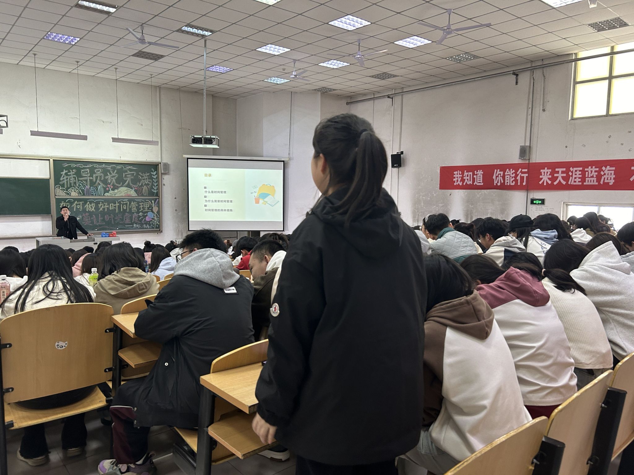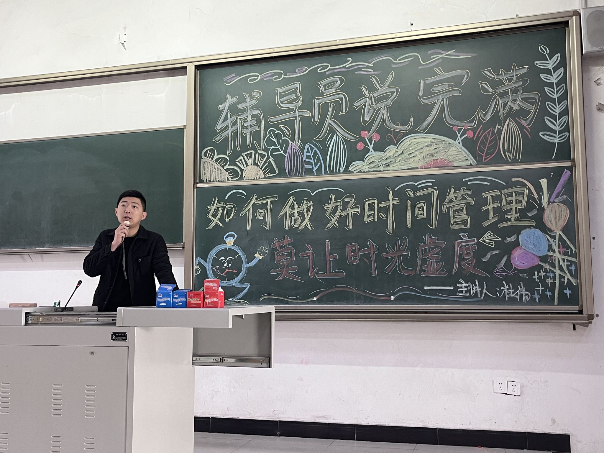 时光在流逝,从不停歇;万物在更新,而我们在成长。岁月是那么的公平,从不多给人一秒,相反也不会少给任何人一秒。每个人都会由时光的飞逝而经历着人生中最重要的过渡。在这个快节奏的时代,时间似乎总是匆匆而过,我们常常感到时间不够用,无法充分利用我们的生活。为了帮助大家更好地管理时间,淬炼·国际商学院辅导员杜伟于3月15日12:30在博学楼301教室为会计2201-2205班、营销2201班开展了以“如何做好时间管理,莫让时光虚度”为主题的辅导员说完满活动。