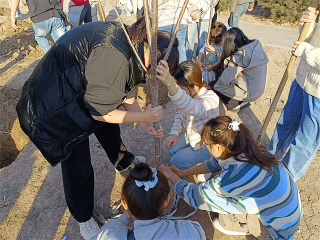 “初春新绿,万般美好”。今天种下的树苗,终有一天会成为学子成长路上的风景。通过本次活动,同学们不仅体会到植树带来的巨大成就,更加切实明白保护森林、爱护生态环境的重要性。等到几棵小树长成巨木,我们共同聆听这片绿茵涛声。