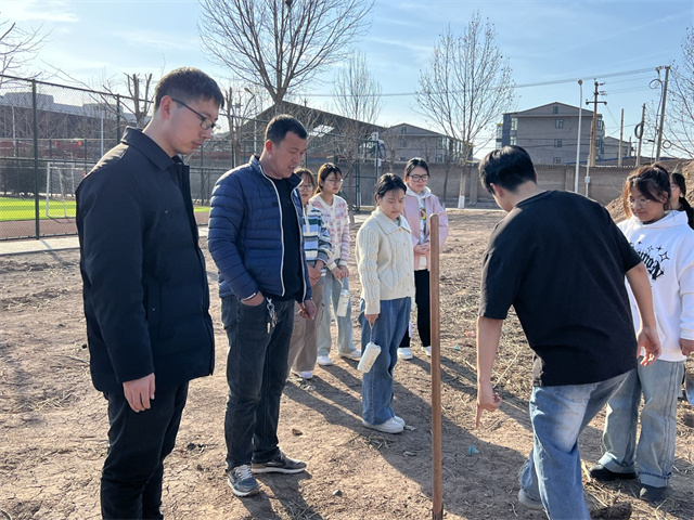 活动正式开始前,张煜若同学向大家介绍种植杏树的注意事项以及杏树的生长习性。随后,班委们分发树苗和工具,每个宿舍负责一棵树苗,携手后勤部陈天龙等老师们一起种植和养护。初次植树,同学们跃跃欲试,迫不及待地挑选心仪的树苗。