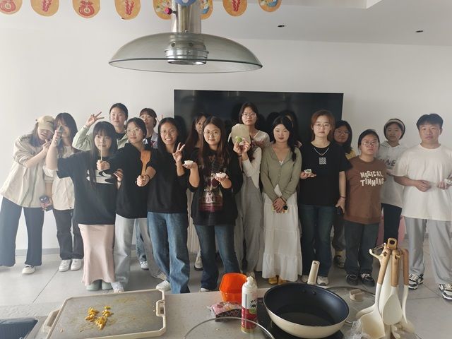 4月12日14:00,经济与管理学院物流2201班于毣谷书院共享厨房开展“春光正好,青团正俏”美食DIY活动,共享温馨的烹饪时光。大家五人一组分工合作,将预拌粉倒入容器中,加入适量的热水,搅拌均匀直至无颗粒状,再揉成一个个剂子,选定的馅料被精心放置在容器内,等待着被包裹进糯米团中。包馅的过程更是考验大家的手艺和耐心,同学们取适量绿色的糯米团搓成圆形,用手掌轻轻压扁后放入馅料,封口捏紧再搓成圆形。不一会儿,一个个青绿如玉、圆润可爱的青团便呈现在大家眼前,一颗颗软糯香甜的青团,唤醒春天的味蕾。活动现场充满了欢声笑语,同学们相互交流制作心得,分享着制作的快乐。青团制作不仅是一次美食的DIY体验,更是一次文化的传承和交流。