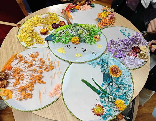 团扇轻摇,带起的不仅是徐徐清风,更是非遗文化传承之风。为进一步传承和弘扬中华优秀传统文化,感受非物质文化遗产的魅力,资产2102班在青藤书院·大咖·故事里开展了“至扇至美,镌刻永恒”为主题的完满班级活动。工艺匠心,东方美学的团扇,是中华汉族传统工艺品及艺术品,它代表着团圆友善,吉祥如意,可以给亲朋好友送去温暖的祝福。其独特与魅力之处,不仅仅在于它的做法古老神奇,更在于它的每一幅作品都不可复制,作为一种文化的融合和文明的传承,凝结了中国传统文化内涵,兼具实用性、知识性和趣味性。大家收获的不仅是专属的、独一无二的团扇,更是一份对美好生活的追求向往以及对中华传统文化的传承。“至扇至美,镌刻永恒”活动是同学们在课余时间进行美育实践活动的重要平台。通过本次活动,同学们在手绘团扇的活动中,在无穷变化的魅力色彩和花纹中,释放个人天马行空的创作构想,感受生活中的艺术之美。在体验亲身进行创造乐趣的同时,也感受到传统文化的源远流长,余韵悠远。