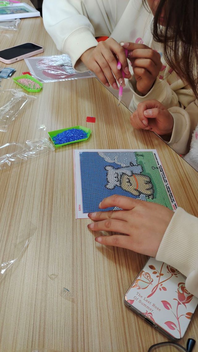 钻石画闪耀着瑰丽的光芒,如同天空中最美的星星,钻石画把精致闪耀的人造水晶平底圆钻和设计精良的图案有机的结合在一起,它结合了绘画和手工艺的特点。资产2101班于无边书院“职”说空间B开展了以“钻石入画,星光璀璨”为主题的完满团支部活动,旨在培养同学们的创造力、手工能力和注意力集中能力。许多学生在看到自己完成的作品后,或者得到彼此的赞美后,更加用心去完成自己的作品,更加珍惜自己的劳动成果。此次制作钻石画DIY活动,不仅培养了大学生的动手能力和创造能力,同时锻炼了同学们的耐心和专注力。同学们都知道,勤动手可以促进人大脑的发育,而钻石画就是不二的选择。静能生慧,静下心来:摇钻、选择、粘贴,每一步的用心都会绽放出智慧的火花。
