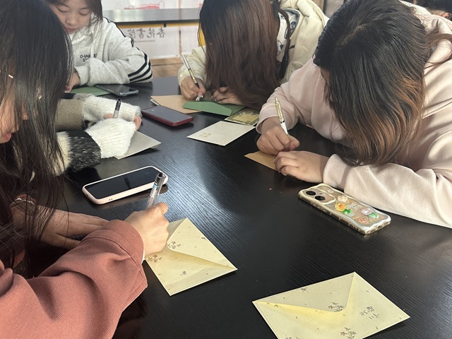 随着阅读的深入,同学们着手开始书写明信片,准备将自己的心声寄托于这张小小的纸片之上。在写作过程中,有的同学以抒情的笔触,表达对书中人物的喜爱与敬意;有的同学则以对话的形式,仿佛身临其境与书中人物进行心灵的交流。