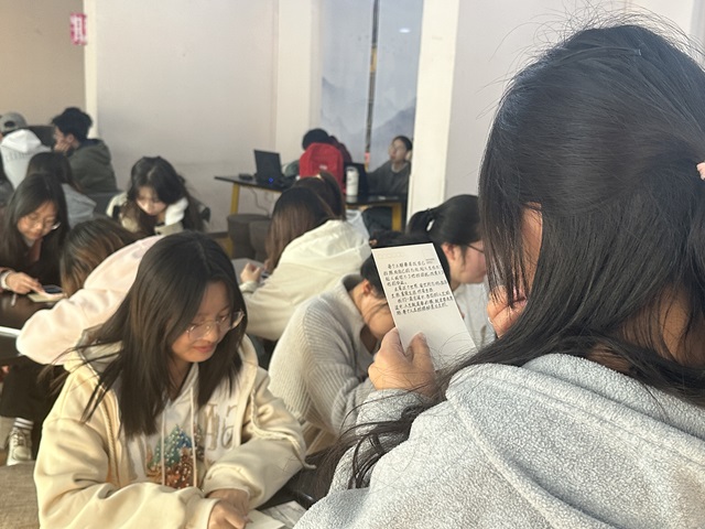 3月14日16:00,国贸2301班于杏花书院表达力大厅开展以“穿越第一件事,我想对你说”为主题的大咖阅读主题活动。本次活动旨在通过阅读和写作,引领同学们更加深入地探索书中的世界,与书中的人物建立深厚的情感联系。