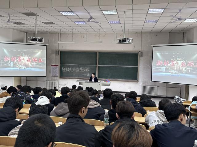 任凯悦老师从新年热门电影《热辣滚烫》引入,以剧中主人公的经历为例,让同学们定下自己新学期的新目标。她说到,同学们应该“刷新”思想,坚定理想信念,实现自我追求,要放下生活中对自己身心不利的事与物,不要沉迷于短视频和游戏,用更健康的生活方式来充实自己的学习生活,更好地维护人际关系,提升学习效率,更好地享受大学生活。