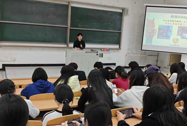 针对同学们普遍面临的“开学焦虑”问题,辅导员刘家辉结合日常观察与心理知识,给出了一套具体可操作的“调整方案”。他强调,焦虑往往源于“想太多、做太少”,而缓解焦虑的关键在于从生活细节入手:首先要及时调整作息,通过逐步提前入睡、起床时间,减少熬夜刷手机的频率,让生物钟尽快适配校园节奏;其次要坚持合理运动,每天抽30分钟参与跑步、跳绳等运动,既能释放压力,也能提升身体活力;同时要保持健康绿色饮食,减少高油高糖的零食,多吃食堂的新鲜蔬果,用健康的身体状态支撑学习生活;最后要摒弃杂念、集中注意力,将学习任务拆解成小块,逐步找回专注的状态。