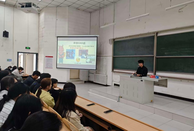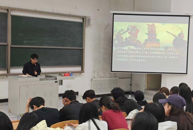 活动开场,辅导员刘家辉没有采用传统的说教模式,而是以今年暑假热映的动画电影《浪浪山小妖怪》为切入点——“就像小妖怪们在浪浪山里既向往外界,又害怕改变一样,我们刚开学时,是不是也会在‘想好好开启新学期’和‘还没从假期状态里走出来’之间纠结?”一句贴近学生生活的提问,瞬间引发全场共鸣,也自然引出本次活动的核心主题。